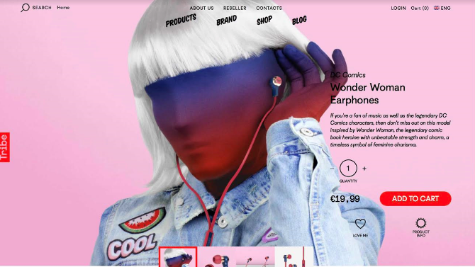 Per questo motivo, i modelli umani che popolano l’area e-commerce del sito hanno un volto reale ma neutro: Tribe vuole così lasciare la massima espressione sia al prodotto che alla libera interpretazione di come debba essere l’aspetto di chi li indossa. Il linguaggio scelto 'parla' letteralmente all’utente accompagnandolo nella sua esperienza di navigazione, prima alla scoperta dei prodotti, attraverso la descrizione discorsiva e tecnica degli accessori e una gallery ricca di immagini, e poi all’acquisto, agevolando la comprensione dell’ampio catalogo con la divisione tra categorie di prodotti e brand in licenza.