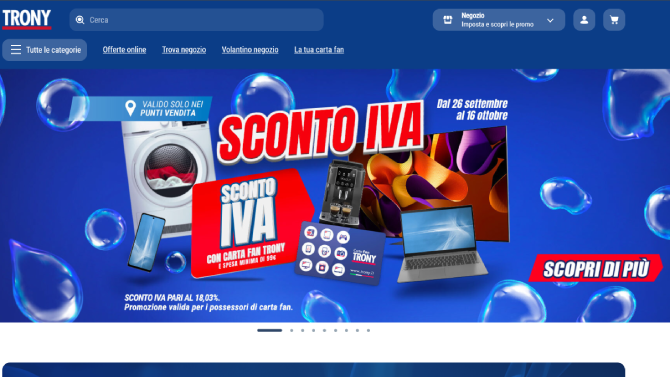 Un asset strategico che guarda al futuro. Con il suo nuovo sito, sviluppato da Eurostep Commerce, con user interface ad opera di Kettydo+, Trony si impegna a consolidare il suo ruolo di leader nell’elettronica di consumo, offrendo un’esperienza di acquisto che coniuga la comodità dell’e-commerce con l’efficienza e la prossimità dei punti vendita. L’innovazione del sito, supportata da una supply-chain ottimizzata e da un programma di CRM consolidato ed efficiente, rappresenta un importante passo avanti nella strategia digitale dell’azienda, al servizio della rete fisica e del cliente finale.
