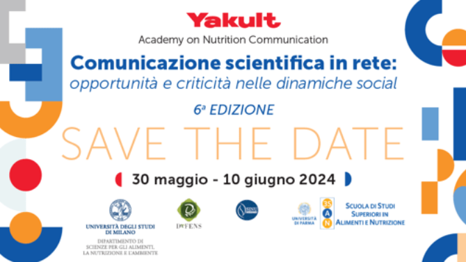 Torna la “Yakult Academy on Nutrition Communication”, giunta alla sua 6a edizione e organizzata dal Dipartimento di Scienze per gli Alimenti, la Nutrizione e l’Ambiente dell’Università degli Studi di Milano (DeFENS) in collaborazione con la Scuola di Studi Superiori in Alimenti e Nutrizione