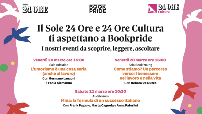 Il Gruppo Il Sole 24 ORE al Book Pride tra libri, incontri e nuove prospettive. Dallo humour relazionale al benessere personale, al ritratto di Mina: tre incontri e un’offerta editoriale che unisce cultura, formazione e creatività. Il 20–22 marzo a Milano