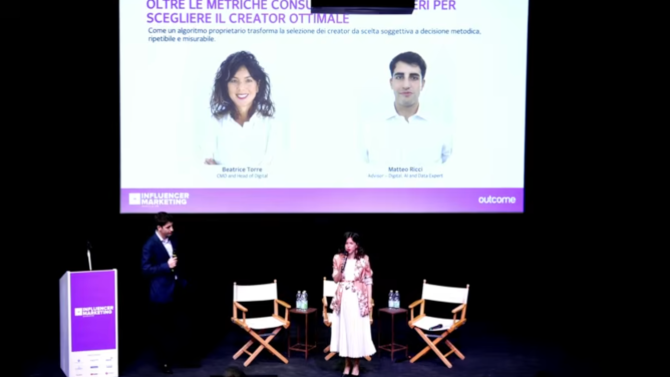 Tra gli interventi sul palco dell'Influencer Marketing 2026, anche quello di Beatrice Torre e Matteo Ricci di Outcome, che hanno acceso i riflettori su un tema cruciale: come superare le metriche tradizionali per arrivare a una scelta davvero efficace dei creator.