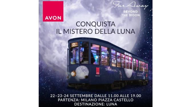 Avon, azienda mondiale nel settore beauty nel canale della vendita diretta di prodotti cosmetici, parte del Gruppo Natura &Co, presenta la nuova fragranza femminile, FAR AWAY BEYOND THE MOON (50ml – 24,99€), personalizzando internamente ed esternamente uno storico tram milanese per un viaggio esperienziale alla conquista dei poteri ipnotici della luna, complici le note del nuovo profumo che diventerà il protagonista delle vie del centro di Milano.