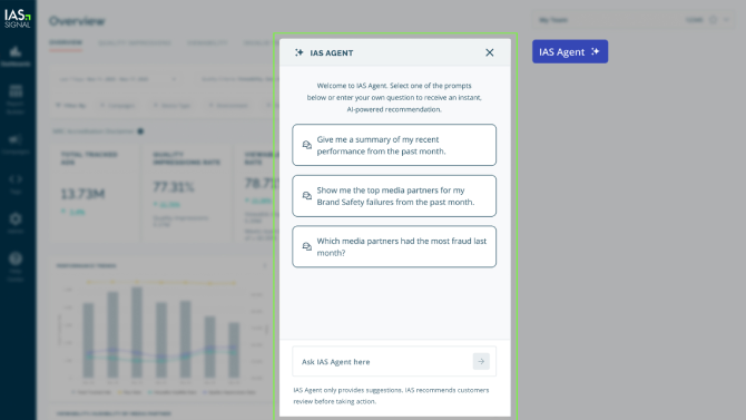 IAS Agent abilita un accesso più rigoroso e potenziato dall’AI alla brand governance, agli insight di campagne e a workflow significativamente semplificati, permettendo una comprensione completa e raccomandazioni di performance trasversali a publisher e piattaforme. Le raccomandazioni di IAS Agent si basano su un patrimonio di intelligence esteso e consolidato, e non su un dataset di training limitato.