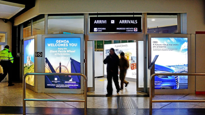 Il secondo contratto assegna a IGPDecaux la gestione esclusiva delle attività pubblicitarie all’interno dell’aeroporto di Genova fino al 2023. Qui IGPDecaux ha avviato un profondo restyling degli impianti pubblicitari con prodotti retroilluminati e lo sviluppo di un network di schermi digitali di nuova generazione.
