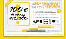 Dopo il successo delle precedenti operazioni di co-marketing tra CheBanca! e Darty, è stato sottoscritto un nuovo accordo da gennaio a fine marzo 2012. L’iniziativa è dedicata a chi non ha ancora un Conto Deposito CheBanca! attivo e prevede un buono acquisto del valore di 100 euro da spendere per acquisti online scegliendo tra gli oltre 4.000 prodotti del catalogo di Darty.it. Riceve il buono acquisto chi, dal 12 gennaio al 31 marzo 2012, richiede l’apertura di un Conto Deposito via web transitando dalla landing page dedicata e ne completa l’attivazione vincolando un importo minimo di 500 euro per 12 mesi entro il 30 aprile 2012.