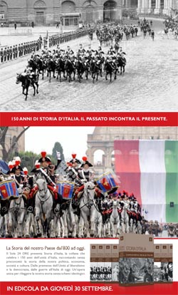 Il Sole 24 ORE presenta 'Storia d’Italia', a partire da domani giovedì 30 settembre, una collana di 12 volumi realizzata in occasione dell’anniversario dei 150 anni dell’Unità d’Italia, per raccontare senza preconcetti la storia della nostra politica, economia, società e cultura. Politica, economia, società e cultura: tutti gli aspetti fondamentali dell’Italia unitaria sono affrontati in volumi compatti e leggibili, omogenei nei criteri e nello stile della trattazione: