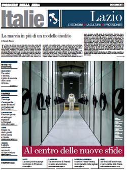 Il numero dedicato al Lazio apre con un editoriale di Daniele Manca che individua nei tredici poli produttivi identificati dal Censis nella regione, una sorta di polmone economico che ha permesso al Lazio di reagire alla crisi.