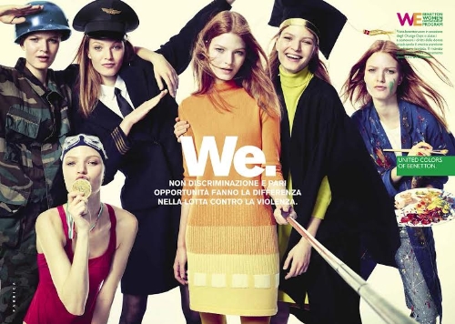 Il brand italiano, in occasione dell'iniziativa promossa dall'ONU, ha creato una nuova campagna centrata sulle pari opportunità e la non discriminazione, in linea con la nuova strategia di sostenibilità del brand italiano. Al centro dell'immagine della campagna, risalta una donna con un capo arancione, in vendita limited edition e il cui ricavato sarà devoluto interamente a UN Women, che richiama la campagna delle Nazioni Unite 'Orange the World', on air dal 25 novembre per 16 giorni. La campagna è stata creata da Erik Ravelo, direttore delle campagne sociali a Fabrica, il centro di ricerca sulla comunicazione di Benetton Group.