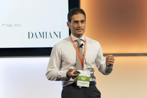 Francesco Giovagnoni, Global Marketing Director del Gruppo Damiani si è rivolto il 7 luglio pomeriggio agli oltre 600 partecipanti con un intervento dal titolo: “Damiani Group and the new customer centric strategy” spiegando l'approccio aziendale finalizzato a conoscere meglio le aspettative del cliente e a realizzare azioni in linea con il suo profilo di consumo.