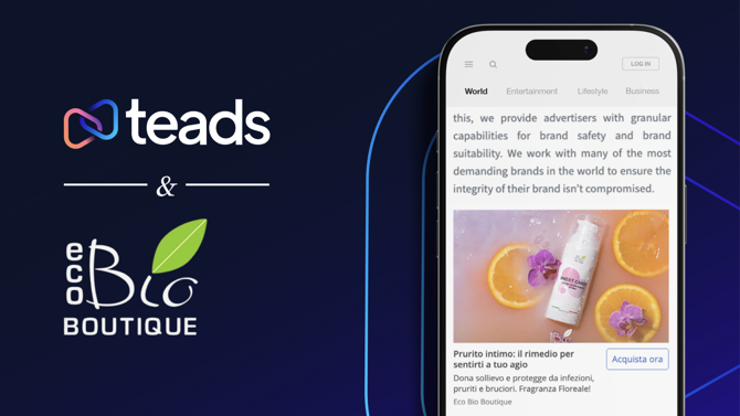 L’approccio nativo di Teads, con un focus strategico sull’erogazione prevalentemente mobile, ha consentito di trasmettere messaggi allineati ai valori fondanti di Eco Bio Boutique — scienza, amore, tecnologia ed ecosostenibilità — promuovendone in modo efficace i prodotti di punta, dal segmento dell’igiene intima fino alla skincare tradizionale.