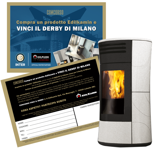 ‘Compra un Prodotto Edilkamin e vinci il Derby di Milano’ (nella seconda foto) è il titolo del concorso che si svolgerà nel punto vendita. Sarà valido per gli acquisti fatti dal primo novembre al 31 dicembre 2019, con l’estrazione prevista entro il 20 gennaio 2020.