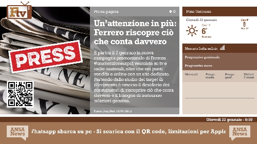 Notizie, rassegna stampa, approfondimenti, video, meteo e Ansa news: questi sono alcuni dei contenuti diffusi dalla corporate tv per informare e rendere i dipendenti protagonisti attivi del mondo Ferrero.