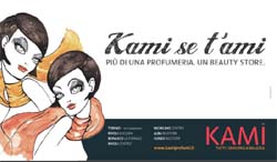 Sarà on air dai primi di luglio la nuova campagna istituzionale di Kami Profumi, una catena di profumerie presenti sul territorio piemontese. La campagna, che vede coinvolti come mezzi principali l'affissione dinamica e la radio, è firmata dall'agenzia Silvano Guidone e Ass. Fulcro della campagna, l'head line Kami Se T'ami, un'assonanza particolare, un gioco studiato per evidenziare e rendere più memorabile il brand. Il visual è un'illustrazione glamour che sottolinea il mood della catena di profumerie. Hanno lavorato al progetto Silvano Guidone (direttore creativo), Germano Demicheli (new business developer), Barbara Faraggiana (project manager), Valentina Pizzali (graphic designer).