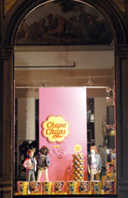Lo store OVS industry di via Panzani a Firenze, in occasione del Pitti Bimbo, è invaso dal colorato mondo Chupa Chups per creare un mondo allegro, vivace e pop dedicato ai bambini. Dal 20 gennaio OVS industry si riempie dei lollipop spagnoli che con i loro gusti e colori accompagnano mamme e bambini alla scoperta della nuova collezione primavera estate 2011.