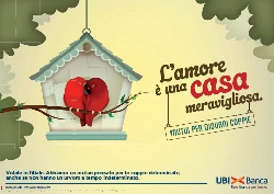 A dimostrazione di quanto UBI Banca creda nel valore di queste iniziative è stata pianificata una campagna di comunicazione importante, che segna anche il debutto della banca in tv. A firmare la creatività è Touch Italy (Omnicom Group) mentre la pianificazione è a cura di InMediaTO. La casa di produzione degli spot è Playstos.Il soggetto dedicato alla soluzione 'Mutuo casa giovani coppie 2013' ha come claim 'L’amore è una casa meravigliosa' ed è accompagnato da un visual con due uccellini 'inseparabili' che cercano un modo per costruire il loro nido. Il visual del secondo soggetto di campagna, quello dedicato al finanziamento per le start-up, raffigura invece un’ape operaia che decide di mettersi in proprio avviando una sua produzione di miele e 'incoronandosi' ape regina. Il claim vuole dare fiducia a chi decide di cogliere la sfida di una nuova attività imprenditoriale, grazie al sostegno della banca: 'Mettersi in proprio è un’impresa, ma noi ti diamo credito'.
