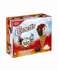 Su Cornetto la novità principale è il lancio della linea Devils&Angels (cioccolato fondente con mandorla e zucchero piccante in superficie), al centro nel