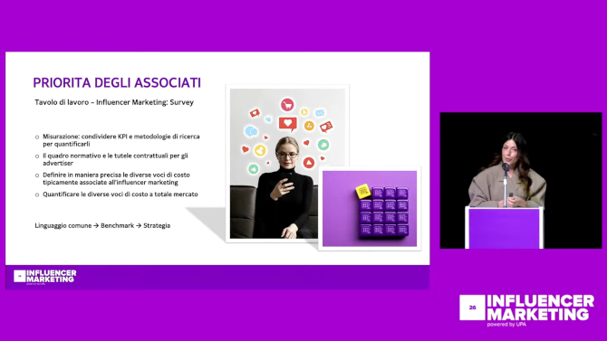 A presentare le priorità delle aziende sul tema è stata Chloé Souchaire, Coordinatrice del Gruppo di Lavoro Influencer Marketing UPA. Le priorità attuali delle aziende UPA che investono in influencer marketing riguardano la misurazione, condividere KPI e metodologie di ricerca per quantificarli, il quadro normativo e le tutele contrattuali per gli advertiser, la definizione precisa delle diverse voci di costo tipicamente associate all’influencer marketing e la quantificazione delle diverse voci di costo a totale mercato. Risulta importante inoltre distinguere fra la figura degli influencer, che comunicano sui propri canali e vengono pagati per produrre contenuti commerciali, e gli ambassador, che rappresentano il brand anche sui canali del brand (campagne, eventi, spot).