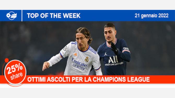 Riprende con grande successo su Canale 5 la programmazione della Champions League con l'incontro degli ottavi di finale PSG - Real Madrid.