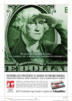 Affari & Finanza compie 25 anni e li festeggia uscendo il 12 settembre completamente rinnovato. Grafica moderna e nuovo contenuto per aprirsi ancora di più al mondo con nuove sezioni e nuove rubriche. Per promuovere la nuova release, la testata è on air con la campagna firmata Young&Rubicam sui mezzi del Gruppo Espresso (stampa, radio, web), Milano Finanza, Italia Oggi, Radio Rai, cartonati/locandine su punti vendita.Tante nonità. Una nuova pagina dei commenti contiene i contributi di economisti italiani ed esteri e brevi interventi sui fatti della settimana. Due nuove sezioni si aggiungono a quelle esistenti: la prima, "Villaggio Globale", con le rubriche "Far West" e "Far East" dei corrispondenti dagli Stati Uniti Federico Rampini e dalla Cina Giampaolo Visetti, racconterà l'evoluzione della globalizzazione, i grandi affari internazionali, le storie delle multinazionali leader.