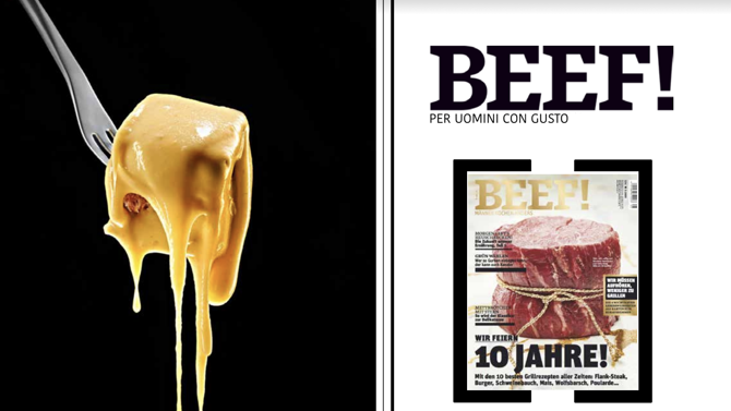 La storia della rivista Beef! inizia nel lontano 2009, in Germania. Vincitrice nel 2015 di uno dei prestigiosi Lead Awards, è l’unica rivista di cucina per uomini. Oltre all’edizione tedesca, che attualmente ha una diffusione media di 60 mila copie su 100 mila di tiratura, la rivista vanta anche quelle in Francia e Spagna.