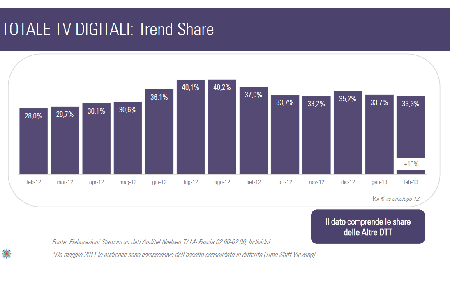 A febbraio 2013 la tv non generalista supera il 33% di share nel totale giorno, con una crescita negli ascolti pari al +19% sull’omologo 2012. Il pubblico si fa più numeroso in tutte le fasce orarie, con un picco di share del 39% registrato la mattina dalle 7 alle 12. .bmp)
