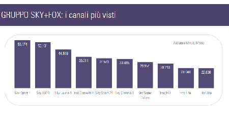 Nel gruppo sat pay Sky+Fox le migliori performance mensili sono ottenute da Sky Sport 1 e dal canale dedicato all’informazione Sky Tg 24 (rispettivamente 55 e 53 mila spettatori nel minuto medio), quest’ultimo premiato dal clima elettorale.