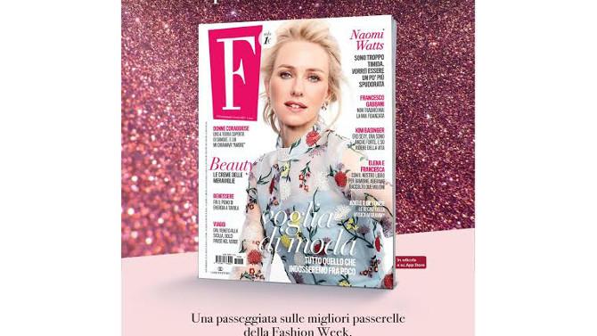 Anche quest’anno in occasione della fashion week milanese F, il settimanale femminile uscirà mercoledì con lo speciale prêt-à- porter sostenuto da una campagna pubblicitaria su tutte le testate Cairo Editore e sul Corriere della Sera.