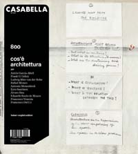 Eccezionalmente per questa occasione, Casabella abbandona la tradizionale scansione interna dei servizi e propone una struttura monografica dedicata ai temi e ai quesiti fondamentali della disciplina, ospitando le riflessioni di alcuni fra i più celebri esponenti dell’architettura mondiale.