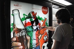 Coca-Cola, sponsor ufficiale degli Europei 2012, sceglie IGPDecaux Innovate, realizzando 10 pensiline interattive che impiegano un monitor 21” interamente touchscreen, per la prima volta in Italia.Le posizioni, scelte strategicamente nel cuore delle città di Milano e Napoli, sfruttano quest’innovativa soluzione di comunicazione che offre interazione con la creatività, studiata da McCann Erickson, e la possibilità di creare il proprio Avatar di supertifoso. Una webcam permette infatti di vedere il proprio viso nel monitor in pensilina e il sistema touchscreen di scegliere come personalizzarlo aggiungendo occhiali, bandiere e divertenti boccacce.