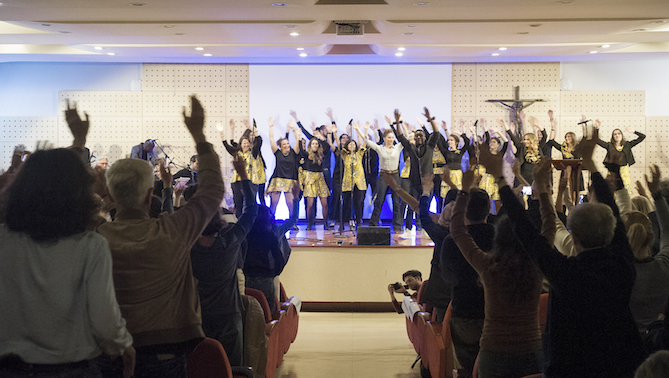 La gremita sala dell’auditorium don Giacomo Alberione ha potuto divertirsi e, allo stesso tempo, approfondire il messaggio di papa Francesco in compagnia dell’attrice Francesca Chillemi, il comico Filippo Caccamo, il cantante Giovanni Baglioni, per poi emozionarsi con la partecipazione della danzatrice Carmen Diodato – sorda dalla nascita, ma capace di cogliere le vibrazioni che arrivano al suo corpo – e le straordinarie performances del Coro interculturale Elikya,