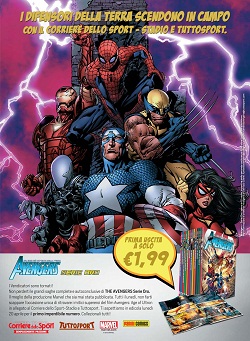 I due quotidiani sportivi italiani iniziano la commercializzazione nelle edicole il 20 aprile con Age of Ultron, la storia che ha ispirato il film, scritta da Brian Michael Bendis e disegnata magistralmente dalle leggende viventi del fumetto americano Bryan Hitch e Carlos Pacheco. Per questa prima uscita il prezzo sarà di 1 euro e 99 centesimi più il prezzo del quotidiano e dalla seconda sarà di 8 euro e 99 centesimi in più.