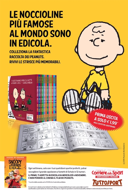 La prima uscita dei Peanuts è fissata per il 4 novembre. L’operazione in collaborazione con Panini Comics che porterà nelle edicole di tutta Italia le 'noccioline' più famose del mondo, è un'altra iniziativa firmata Corriere dello Sport - Stadio e Tuttosport.