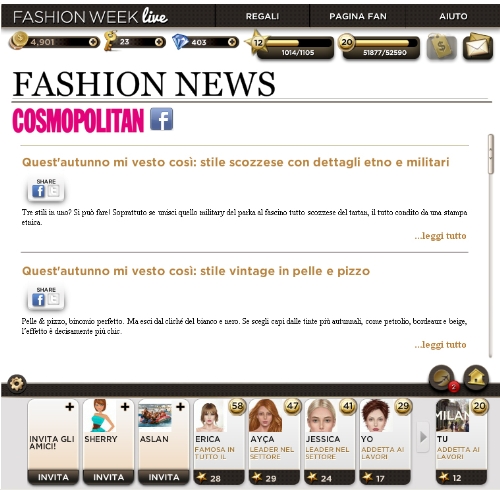 A partire dal 16 settembre, in concomitanza con la settimana della moda milanese, Cosmopolitan fornirà una selezione di contenuti moda per la versione italiana delle News di Fashion Week Live, contribuendo in maniera determinante a rendere l’esperienza di gioco ancora più realistica e garantendo ai propri utenti aggiornamenti sulle ultimissime dal mondo della moda.