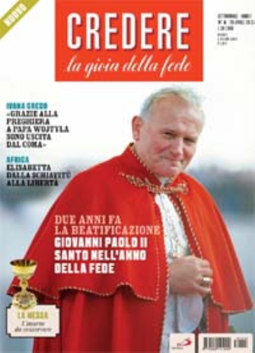 L'articolo di copertina del numero in uscita questa settimana, anticipato alle agenzie, è stato ripreso da giornali e siti di informazione di tutto il mondo, soprattutto di lingua spagnola, portoghese e polacca. Si tratta infatti di Papa Wojtyla: "Giovanni Paolo II Santo nell'Anno della Fede". A due anni dalla beatificazione, un secondo miracolo ha passato il vaglio della Consulta medica: un passo importante per la canonizzazione di Wojtyla che, secondo il vicedirettore di Credere, Saverio Gaeta, estensore dell'articolo, avrebbe come "giorno più probabile" il prossimo 20 ottobre.