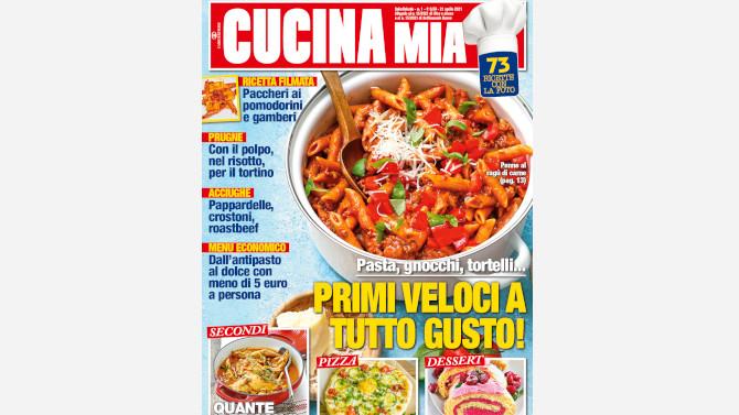 CUCINA MIA con una foliazione di 68 pagine è in edicola allegata ai settimanali Diva e donna dal 7 aprile e Nuovo dall’8 aprile a soli 50 centesimi oltre al prezzo di copertina ed è supportata da una campagna di comunicazione pianificata sui periodici Cairo Editore e sui canali televisivi Rai.