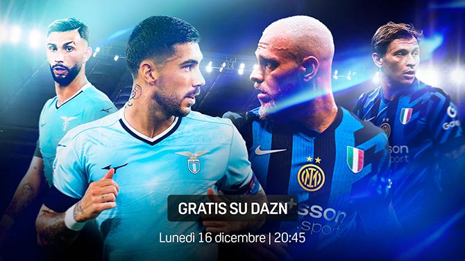Dopo la prima sperimentazione in chiaro con Milan-Napoli, DAZN svela la seconda partita che verrà trasmessa in modalità gratuita: si tratta del big match tra Lazio e Inter in programma lunedì 16 dicembre alle 20:45.