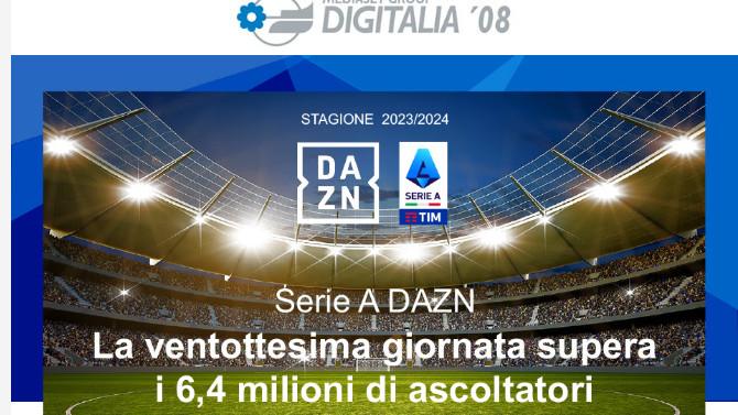 DAZN Serie A 2023/2024: la 28^ giornata supera i 6,4 milioni di ascoltatori
