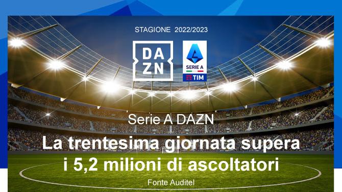 DAZN Serie A. La 30^ giornata supera i 5,2 milioni di ascoltatori