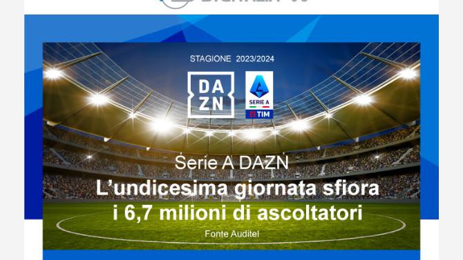 La giornata 11 della serie A DAZN stabilisce il nuovo record stagionale di ascolti: raggiunge quota 6,7 milioni di ascoltatori grazie ai risultati realizzati dai due match di rilievo della giornata: Fiorentina-Juventus domenica alle 20.45 con 1,6 milioni e Atalanta-Inter sabato alle 18.00 che ha superato 1,2 milioni.