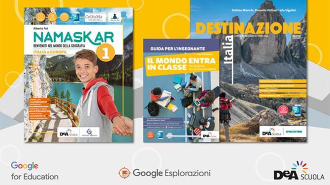 La fruizione delle esplorazioni è coordinata con la pubblicazione del nuovo corso di Geografia turistica Destinazione Italia-Europa-Mondo e con l’uscita del corso di Geografia Namaskar per la scuola secondaria di primo grado, pubblicati da De Agostini Scuola. All’interno dei nuovi testi si trovano indicazioni e suggerimenti per la fruizione delle esperienze immersive. Gli insegnanti che adotteranno i nuovi corsi di Geografia De Agostini riceveranno Il mondo entra in classe, una guida per utilizzare gli strumenti digitali Google.