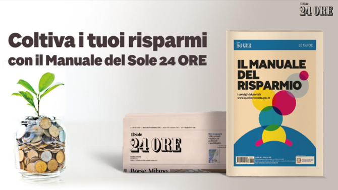 In occasione del mese dell’educazione finanziaria promosso dal Ministero dello Sviluppo Economico e in vista della Giornata Mondiale del Risparmio in programma il 31 ottobre, sarà in edicola martedì 30 ottobre con Il Sole 24 Ore l’instant book 'Il Manuale del Risparmio', realizzato dal quotidiano in collaborazione con il Comitato per la programmazione e il coordinamento dell’attività di educazione finanziaria.