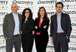 Un upfront in grande stile quello organizzato oggi, 28 novembre, alla Diamond Tower di Milano, da Discovery Italia. Il D-Day, realizzato con la collaborazione di Filmmaster Events (leggi news e leggi la notizia completa su www.e20express.it), è partito questa mattina con la presentazione alla stampa per poi concludersi con l'evento dedicato agli investitori. "Discovery Italia oggi conta un portfolio complessivo di 12 canali, grazie al quale è terzo broadcaster italiano, con una share media annua del 5,5% (gennaio-ottobre 2013, adulti 4+, ndr.) - ha esordito Marinella Soldi (nella foto insieme a Andrea Castellari, Laura Carafoli e Fabrizio Salini), Ad Discovery Italia - . L'Italia è il quinto mercato per Discovery Networks; attualmente Discovery Italia conta su un team di oltre 200 persone e si distingue sul mercato per la sua capacità di dare vita a a dei canali che sono dei veri e propri love brand a cui il pubblico si affeziona. Nel 2014 ci focalizzeremo ancora di più sulle produzioni originali, che cresceranno del 40% e si concentreranno in particolare su Real Time, Dmax e Frisbee. In termini di acquisizioni l'anno prossimo saranno più di 6.000 le ore di programmazione acquistate".