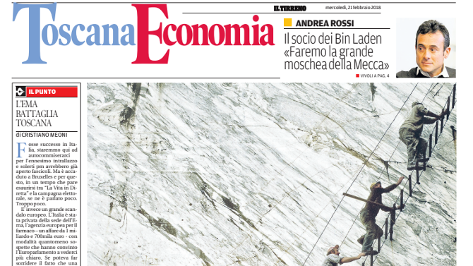 Il secondo appuntamento organizzato dal quotidiano toscano diretto da Luigi Vicinanza è proprio nella capitale del marmo, a Carrara, alle ore 16 di domani (mercoledì 21), nella sede dell’Accademia, con un incontro dal titolo 'Marmo, orgoglio toscano'.