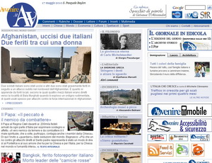 Domenica 16 maggio Avvenire si è presentato con un’edizione speciale per accompagnare l’iniziativa di movimenti e associazioni del laicato cattolico italiano, che hanno invitato i loro aderenti a partecipare in piazza San Pietro a mezzogiorno alla preghiera del Regina Coeli guidata dal Papa come gesto di affetto e di sostegno per Benedetto XVI. Il quotidiano dei cattolici ha preparato una 'sorpresa' editoriale per chi lo acquisterà al suo arrivo in piazza, dove sarà distribuito sin dalle prime ore del mattino, come per quanti lo cercheranno nelle edicole e nelle parrocchie di tutta Italia. Un modo per unirsi al gesto proposto dalla Consulta nazionale delle aggregazioni laicali (Cnal) e incoraggiato dalla Cei, tanto che a guidare il momento di preghiera introduttivo, dalle 11 sempre in piazza San Pietro, sarà lo stesso presidente dei vescovi italiani cardinale Bagnasco.