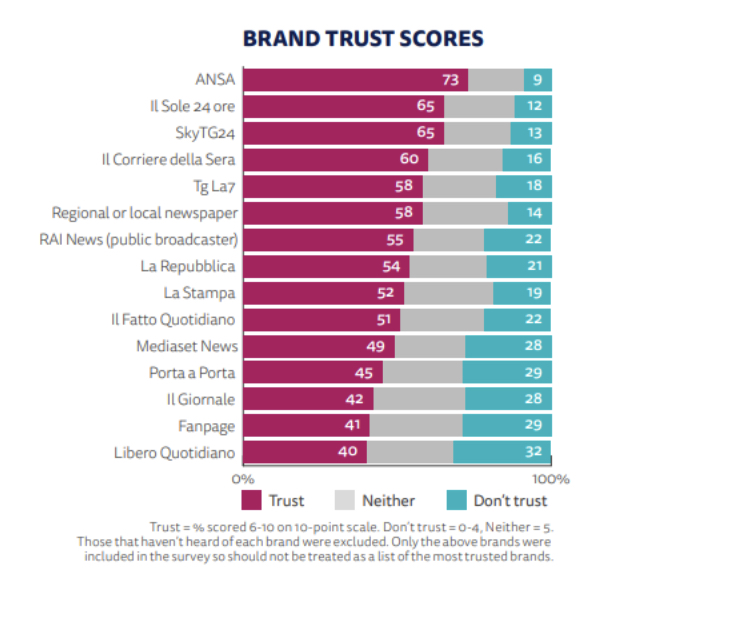 La certificazione della qualità dell’informazione online proviene dal Digital News Report del Reuters Institute dell’Università di Oxford, giunto alla undicesima edizione, che fa parte del percorso Trust in News Project e che quest’anno ha raggiunto la copertura di 46 mercati nazionali che rappresentano più della popolazione mondiale.