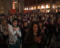 A Roma 200 ballerini hanno invaso la Galleria Alberto Sordi eseguendo le coreografie di 'Glee', la serie candidata a quattro Golden Globe e vero e proprio fenomeno di culto negli Stati Uniti con ascolti record e colonna sonora in vetta alle classifiche iTune. La prima puntata della serie verrà proposta in anteprima assoluta per l'Italia da Fox la sera di Natale. Per leggere la notizia vai su www.e20express.it.