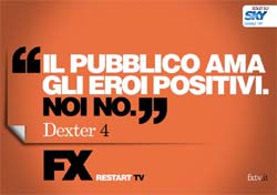 Al via la campagna di rilancio di FX (canale 119 di Sky) che dal primo marzo 2010 cambia pelle. Pur rimanendo un canale prevalentemente a vocazione maschile, il nuovo FX avrà una programmazione pensata per un pubblico esigente alla ricerca di un intrattenimento originale e di qualità. La campagna di comunicazione ha l’obiettivo di raccontare il cambiamento radicale del canale, trasmettendone con efficacia il nuovo spirito e il carattere. Il payoff scelto è Restart Tv, che esprime perfettamente la missione di FX, essere il punto di riferimento per un nuovo modo Il canale, proposto agli abbonati Sky da Fox Channels Italy, si rinnova completamente nella grafica e nei contenuti, puntando su una programmazione che spazia dalle più acclamate e prestigiose serie televisive internazionali, alle produzioni italiane più innovative, all’animazione e ai documentari.