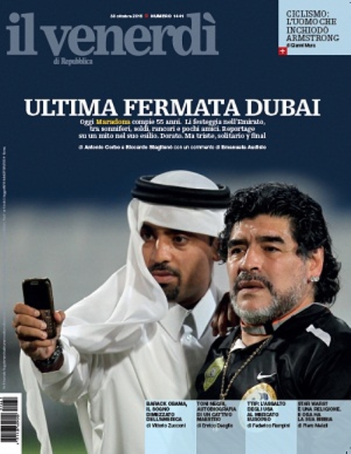 Ma 'il Venerdì' sarà anche arricchito da nuove sezioni e nuove grandi firme. Il primo servizio di copertina è dedicato all'esilio dorato di Diego Maradona a Dubai, tra recriminazioni, sonniferi, pochi amici e molta servitù. Un reportage che richiama un'altra novità del Venerdì: dopo l'introduzione della sezione 'Economie', ogni settimana il giornale racconterà storie inusuali di sport, scritte dalle migliori voci di Repubblica (si comincia con Gianni Mura e il ciclismo), ma anche da scrittori, appassionati e viaggiatori.