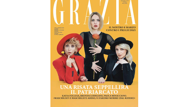 In occasione della Festa della Donna, Grazia, presenta l’edizione straordinaria Una risata seppellirà il patriarcato, in edicola da oggi. Protagoniste di questo numero speciale, con interviste e un servizio fotografico esclusivi, sono Katia Follesa, Paola Minaccioni e Brenda Lodigiani, tre attrici comiche di punta, molto amate dal pubblico. Il magazine diretto da Silvia Grilli le ha scelte per celebrare l’International Women’s Day e dire a tutti i maschilisti (e le maschiliste) che anche dall’ironia può partire una rivoluzione.