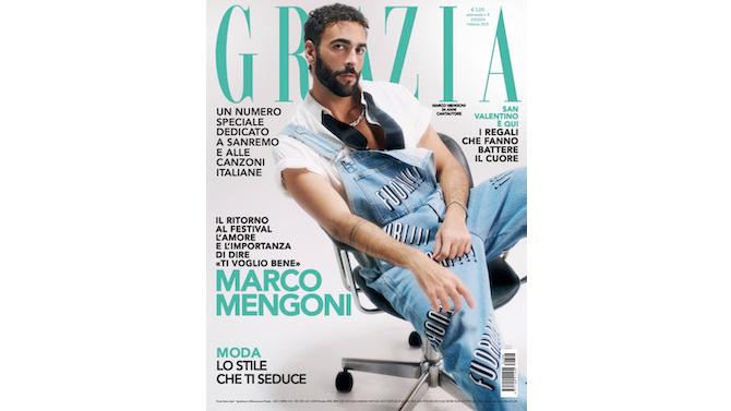 Sguardo dritto e salopette in denim, è Marco Mengoni a dare il benvenuto a lettrici e lettori nella cover del numero speciale del magazine. Ad aprire questa edizione straordinaria è infatti un’intervista esclusiva dove il cantautore racconta a Grazia molto di sé, di questi anni, del suo rapporto con i sentimenti, ma anche la sua infanzia, la scuola, gli incontri importanti, dell’uomo che è oggi e della sua fatica nell’esprimere i propri sentimenti, e ovviamente del ritorno sul palco dell’Ariston dopo dieci dalla sua vittoria.